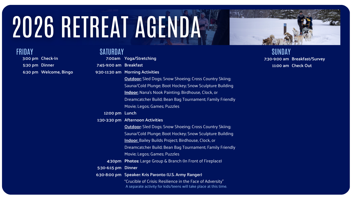 United Way of Northeastern Minnesota's United for Veterans initiative and U. S. Steel are proud to present a winter retreat for veterans and service members who live and/work within our service area to attend individually, with a significant other, or with their families.